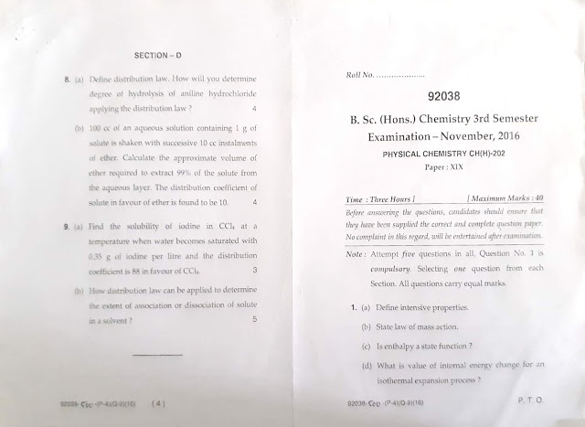 Bsc. Chemistry Hons. 3rd sem. Exam papers